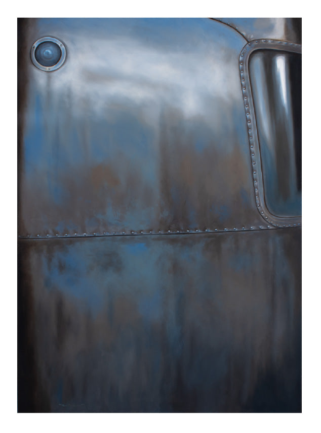 A study on the intricacies of aged metal takes the shape of a symbolically parked camping trailer that captures the essence of wanderlust and adventure. I wanted to arouse memories of trips from growing up and invite viewers to ponder themes of journey, stillness, and the spaces between adventure and rest.